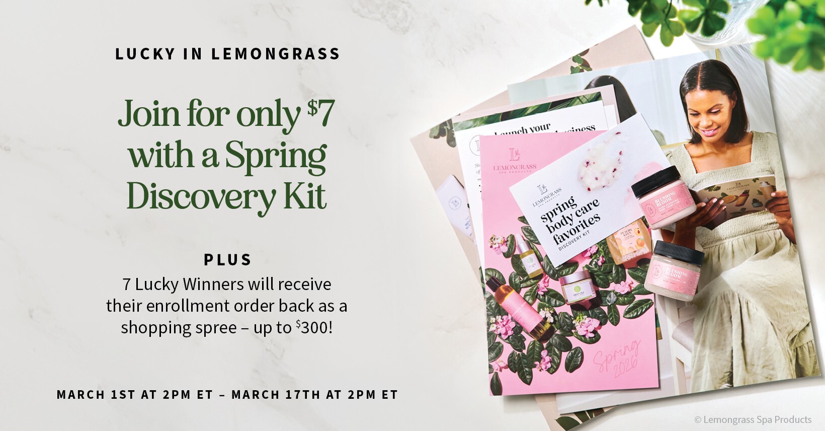 Get started effortlessly with our guidance every step of the way. From March 1st – March 17th at 2PM Join for only $7 with a Spring Discovery Kit. Plus 7 Lucky Winners will receive their enrollment order back as a shopping spree – up to $300! You can select from 4 curated collections of products and business tools that fit your budget. And in the month of March, you’ll receive a Free Spring Discovery Kit