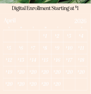 April Exclusive – Join on April 1st with $1 with your digital enrollment. Each day after the price rises $1, maxing out at $20
