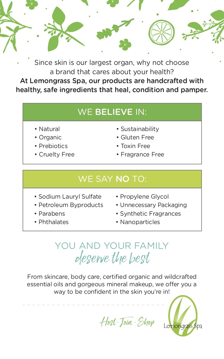When I first started Lemongrass Spa in Colorado sixteen years ago, I met Susan Roll, who was in the process of finalizing the SkinDeep Database on the Environmental Working Group’s website. She was so passionate and educated about the toxic load that personal care products had in the marketplace that she made it her life’s goal to educate and insist upon safer products. It was her mission to demand that skincare companies fully disclose their ingredients in products. Since the FDA does not regulate skincare and makeup, no one was watching what large cosmetics companies were hiding in their products. Come to find out, many of those companies were not concerned about the toxicity of their ingredients and many of those so-called ‘safe’ ingredients were in fact being absorbed into skin and wreaking havoc on the health of Americans.